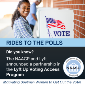 Caption:Over 15 million voters did not vote in the last election because they did not have rides to the polls. Let’s get the word out about this valuable program so that everyone has access to vote. Go to: www.lyft.com/lyftup/programs. #NAASCVotes @SpelmanWomenVote #SWV2024 |