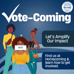 Caption: Are you ready for Vote-Coming? Join us at homecoming to learn how weplan to amplify our impact. Take a picture at our tent, post it and tag us. Then make sure you log your activity at naasc.org #SpelmanVotes #SWV2024 #Votecoming2024