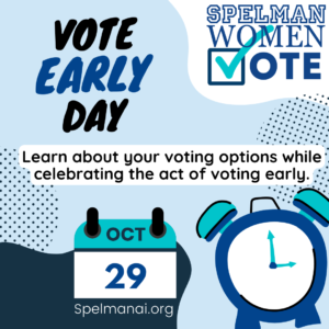 Caption:Celebrate Vote Early Day on October 29th! Vote early to ensure that school,work, long lines, or a bad commute on Election Day won’t stop your ballot from being counted! Let us know if you voted early by counting your activity at naasc.org #SpelmanVotes #SWV2024 #Votecoming2024 |