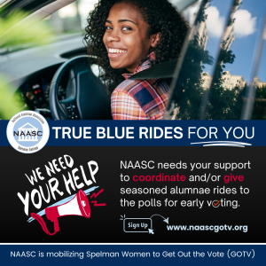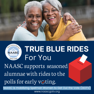 True Blue Rides for you offers rides to our sisters who need assistance getting to the polls. Contact your NAASC Local Chapter to request assistance. If you are able to provide rides, fill out the form located here.